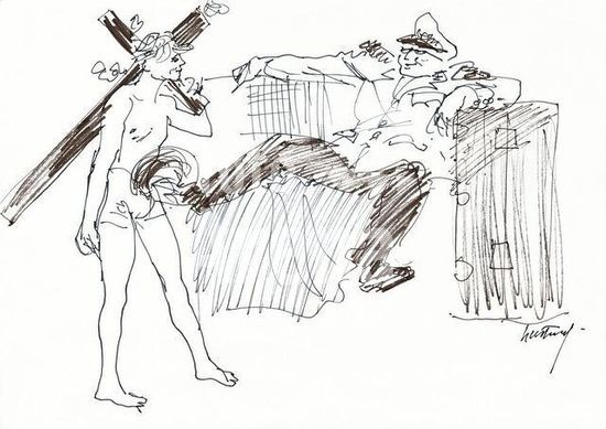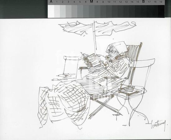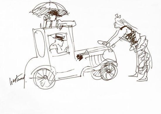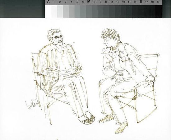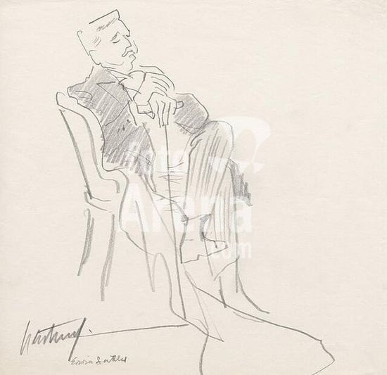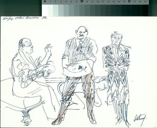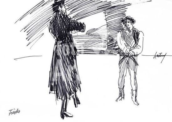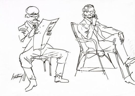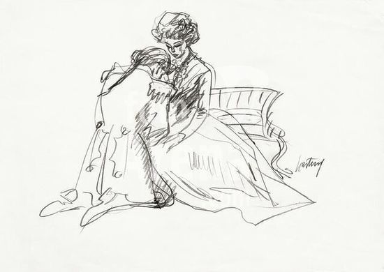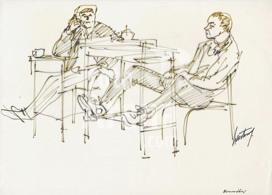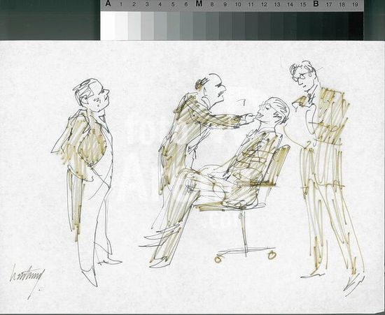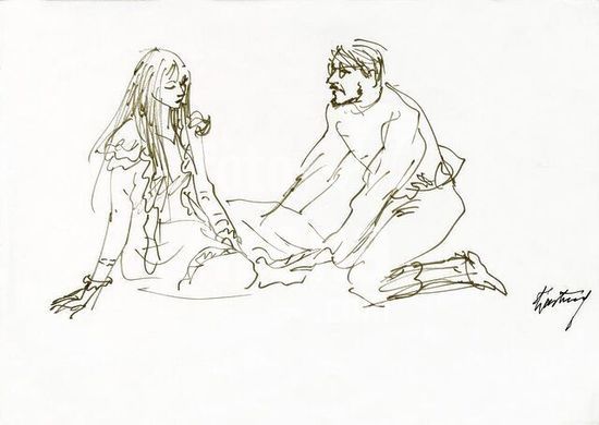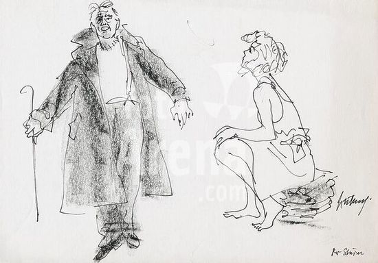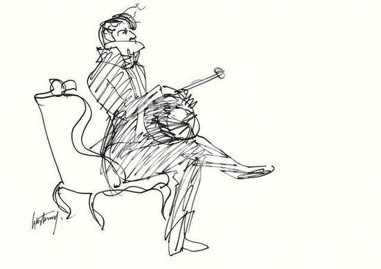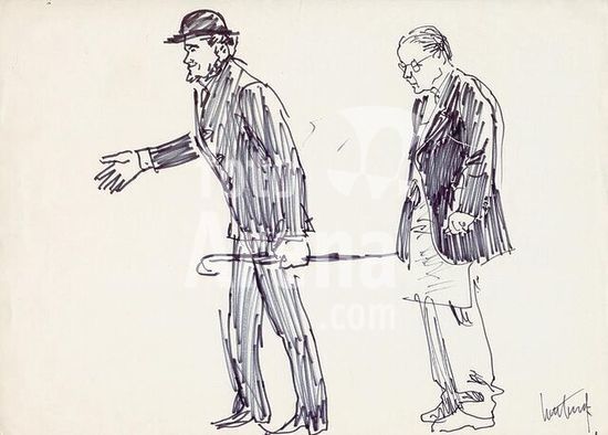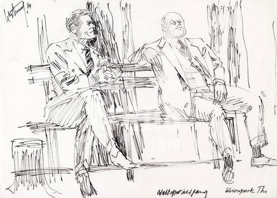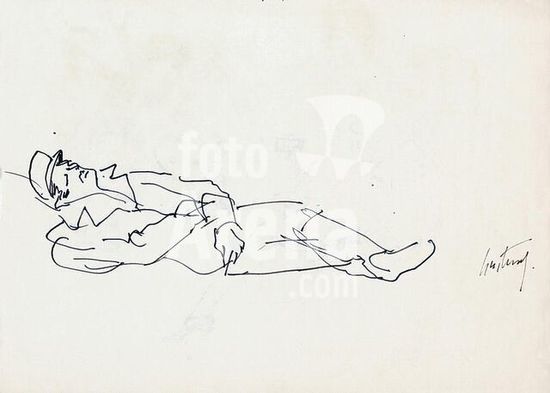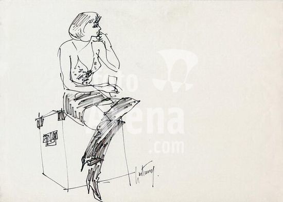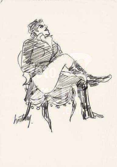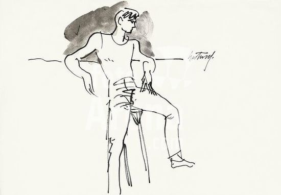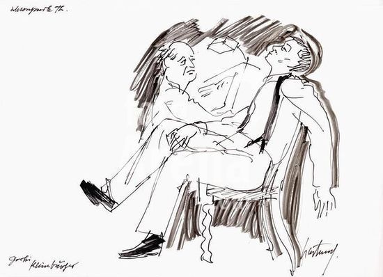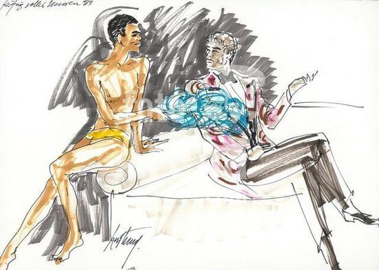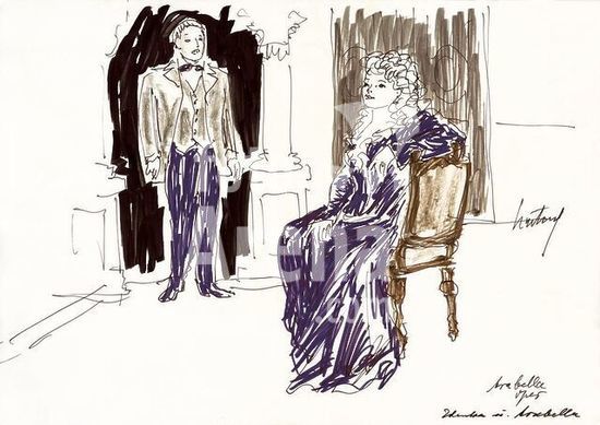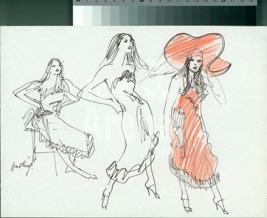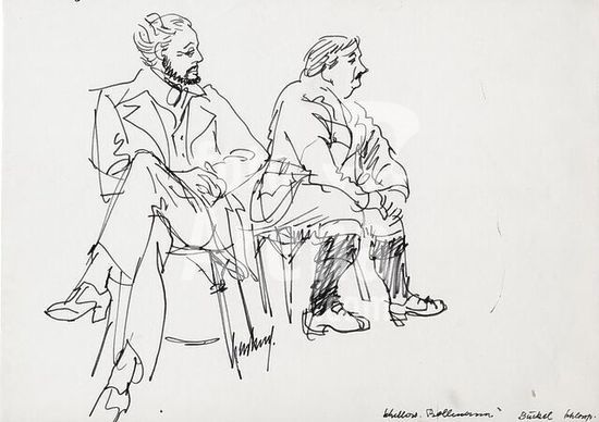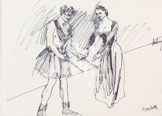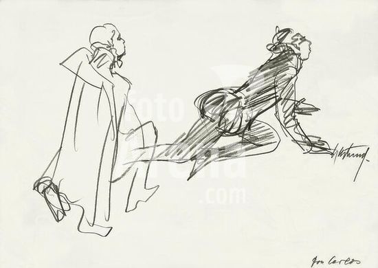 Roland Petit; French dancer, choreographer and ballet director; Villemoble (Seine-Saint-Denis) 13.1.1924 - Geneva 10.7.2011. Works: Proust ou Les Intermittences du coeur (Ballet, 1974). Performance Deutsche Oper Berlin, 1984 (Director / Choreographer: Roland Petit): Scene. Drawing, 1984, by Gerd Hartung (1913-2003). Felt tip pen on paper 21 × 29.7cm. Private collection. Museum: PRIVATE COLLECTION. Copyright: For editorial use only. This artwork is not in the public domain. akg-images represents the artistic copyright of this artist, please contact us from more information and to clear the necessary permissions. Gerd Hartung's artistic copyright cleared via akg-images.