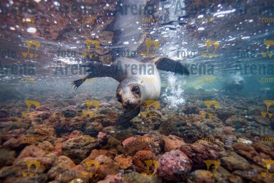 1112-230 Galapagos sea lion (Zalophus wollebaeki) underwater, Tagus Cove, Isabela Island, Galapagos Islands, Ecuador, South AmericaLegenda da Fotoarena:Galapagos sea lion (Zalophus wollebaeki) underwater, Tagus Cove, Isabela Island, Galapagos Islands, Ecuador, South America