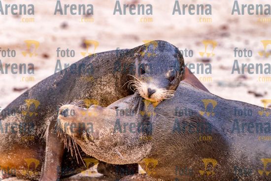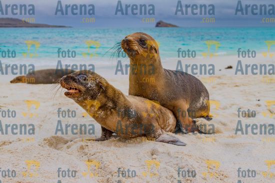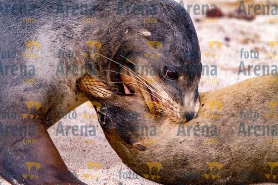1112-10091 Young Galapagos sea lion bulls (Zalophus wollebaeki) mock-fighting in the Galapagos Islands, UNESCO World Heritage Site, Ecuador, South AmericaLegenda da Fotoarena:Young Galapagos sea lion bulls (Zalophus wollebaeki) mock-fighting in the Galapagos Islands, UNESCO World Heritage Site, Ecuador, South America