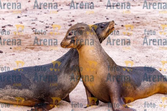 1112-10092 Young Galapagos sea lion bulls (Zalophus wollebaeki) mock-fighting in the Galapagos Islands, UNESCO World Heritage Site, Ecuador, South AmericaLegenda da Fotoarena:Young Galapagos sea lion bulls (Zalophus wollebaeki) mock-fighting in the Galapagos Islands, UNESCO World Heritage Site, Ecuador, South America