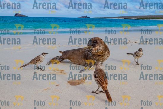 1112-11044 Galapagos sea lion (Zalophus wollebaeki) pup and curious bird, Galapagos Island Archipelago, UNESCO World Heritage Site, Ecuador, South AmericaLegenda da Fotoarena:Galapagos sea lion (Zalophus wollebaeki) pup and curious bird, Galapagos Island Archipelago, UNESCO World Heritage Site, Ecuador, South America