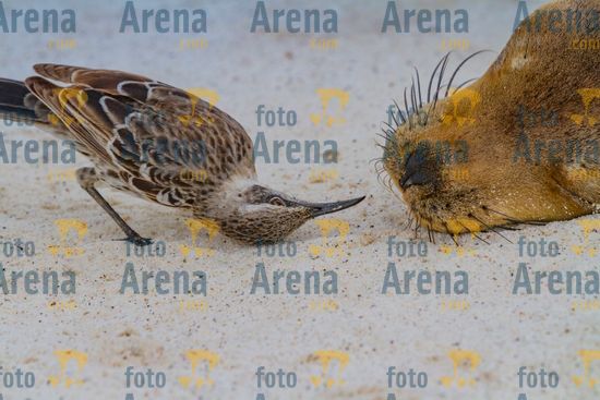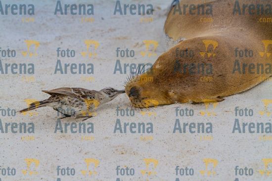 1112-11043 Galapagos sea lion (Zalophus wollebaeki) pup and curious bird, Galapagos Island Archipelago, UNESCO World Heritage Site, Ecuador, South AmericaLegenda da Fotoarena:Galapagos sea lion (Zalophus wollebaeki) pup and curious bird, Galapagos Island Archipelago, UNESCO World Heritage Site, Ecuador, South America