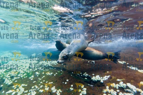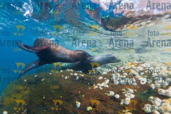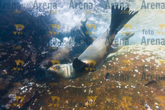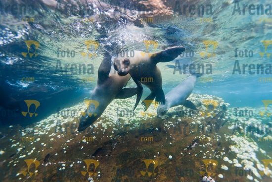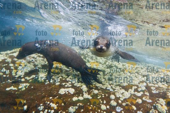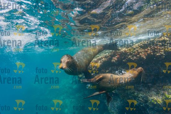 1112-231 Galapagos sea lions (Zalophus wollebaeki) underwater, Tagus Cove, Isabela Island, Galapagos Islands, Ecuador, South AmericaLegenda da Fotoarena:Galapagos sea lions (Zalophus wollebaeki) underwater, Tagus Cove, Isabela Island, Galapagos Islands, Ecuador, South America