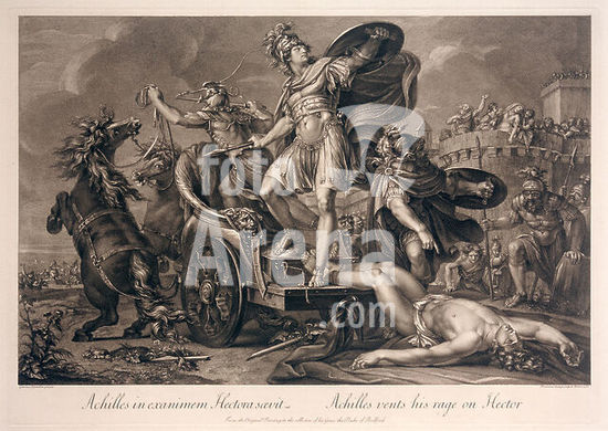 akg3756812 nach: Hamilton, Gavin 1723-1798. "Achilles schleift den toten Hektor hinter seinem Wagen her". Kupferstich, 1766, von Domenico Cunego (1724/25-1803). nach dem Gemälde von Gavin Hamilton. (Aus einer Serie von sechs Gemälden, ab 1758, zum Trojanischen Krieg). Bl. 44,5 x 63,5 cm. Inv.Nr. 591-96. Berlin, SMB, Kupferstichkabinett. Museum: Berlin, SMB, Kupferstichkabinett.