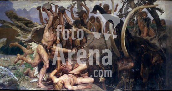 alb3350346 The Stone Age. Mammoth Hunting. Museum: State History Museum, Moscow. Author: Vasnetsov, Viktor Mikhaylovich.