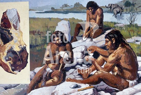 alb1467681 Neanderthals making weapons and tools.
