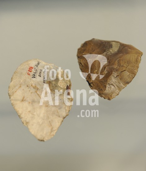alb1955665 Hand axes of flint. Aisne Valley, France. Mousterian Culture. 100000-40000 BC. National Museum of Denmark. Copenhagen. Denmark.