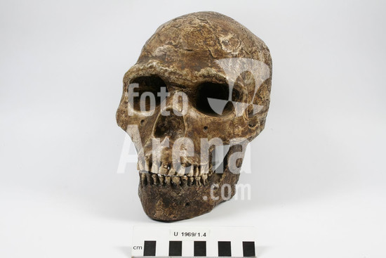 alb4990311 Plaster cast of a skull of a Paleoanthropus palestinensis (Homo neanderthalensis). Mandible U 1969.