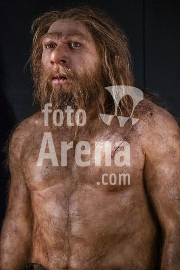 akg7681937 Reconstruction of a Neanderthal man in the Neanderthal Museum in the Neandertal Valley near Mettmann, North Rhine-Westphalia, Germany, Europe. Photo, May 13, 2016.