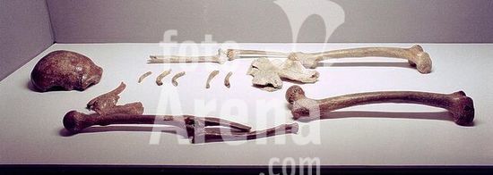 akg297360 Vor- und Frühgeschichte:. Stammesgeschichte des Menschen. Der Neandertaler aus Erkrath / Stadt Mettmann. Nach 50 000 v. Chr. Knochen; Höhe ca. 150-160 cm. Inv. Nr. 322. Bonn, Rheinisches Landesmuseum. Museum: Bonn, Rheinisches Landesmuseum.