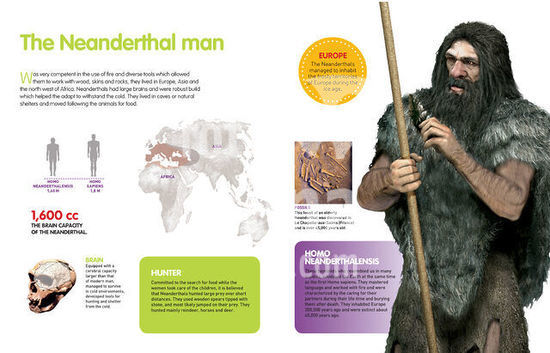 alb2266500 Infographic of the Homo Neanderthalensis (extinct 45.000 years ago), a great hunter, with a great control over fire, language, and the first ones to bury their loved ones. [QuarkXPress (.qxp); Adobe InDesign (.indd); 4960x3188].