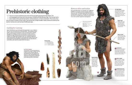 alb2266627 Infographic about prehistoric clothing (100,000 to 5,000 years ago) and how it evolved over time. [Adobe InDesign (.indd); 4960x3188].