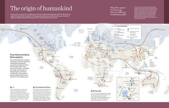 alb2266917 Computer graphics that show the origin and geographical expansion of Humankind: from Australopithecus to Modern Man (from 4 million years to 150,000 years ago). [Adobe InDesign (.indd); 4960x3188].