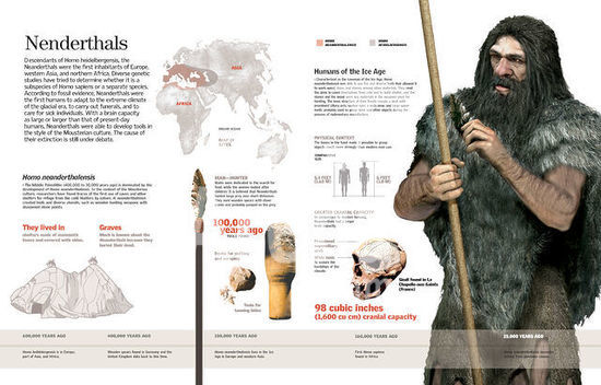 alb2268251 Infographic of the Homo neanderthalensis or neanderthal, its distribution, anatomy, habitat, tools and hunting methods. [QuarkXPress (.qxp); 4015x4133].