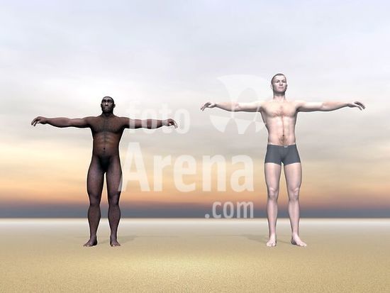 alb3876441 Homo Erectus man next to modern human being.