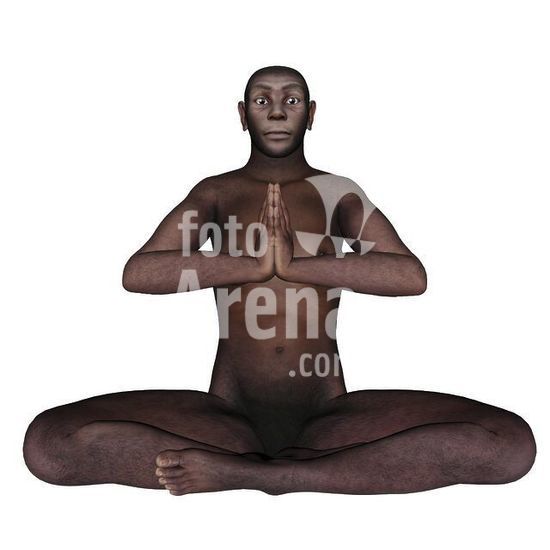 alb3883401 Male homo erectus sitting in meditation, white background.
