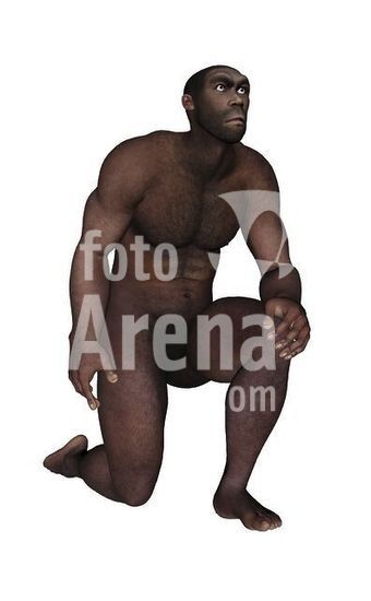 alb3885471 Male homo erectus kneeling, white background.