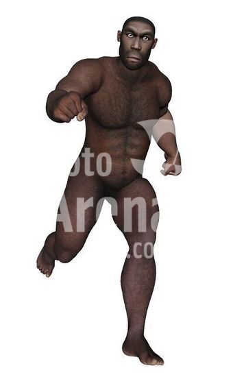 alb3886453 Male homo erectus running, white background.