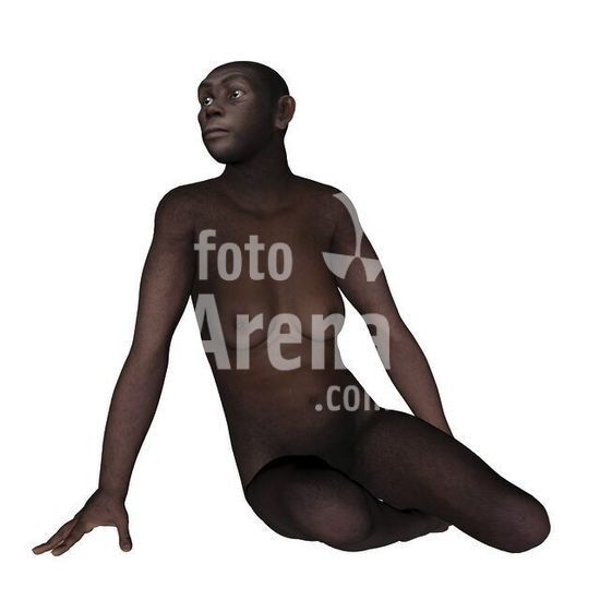 alb3896159 Female homo erectus sitting, white background.