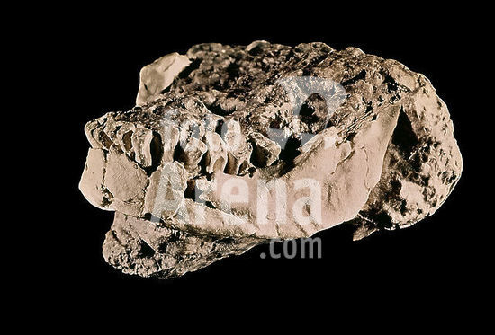 orz007441 Bañolas mandible (Gerona). Neandertal man. Madrid, Ethnological Museum. Location: PRIVATE COLLECTION. BAÑOLAS. GERONA. SPAIN.