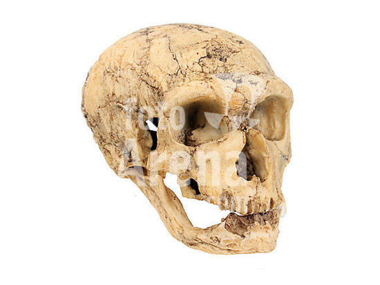 alb2105723 PALEOLITHIC FAUNA BONE REMAINS: SKULL FROM OF A NEANDERTHAL CHILD, FROM THE CAVE OF CARIGÜELA (LOCATION: NATIONAL ARCHEOLOGICAL MUSEUM).