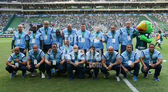 Os seguranças, da SE Palmeiras, recebem medalhes em homenagem Ãá atuação dos profissionais, no jogo da Libertadores contra o Peñarol, no intervalo da partida contra a equipe, do CR Vasco da Gama, durante partida válida pela primeira rodada, do Campeonato Brasileiro, Série A, na Arena Allianz Parque.