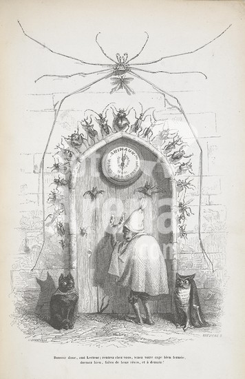 alb4059295 Bonsoir donc, ami Lecteur; rentrez chez vous, tenez votre cage bien fermee, dormez bien, faites de bons reves, et a demain! Anthropomorphic image of various animals and insects. Peines de cœur d'une chatte anglaise.-Guide-âne à l'usage des animaux qui veulent parvenir aux honneurs.-Voyage d'un lion d'Afrique à Paris.-Les Amours de deux bêtes. In: Stahl (P. J.) pseud. Scènes de la vie privée des animaux ... Études de mœurs contemporaines publiées sous la direction de M. P. J. Stahl, avec la collaboration de Messieurs de Balzac, L. Baude, etc. 1842. 1842. Source: 1457.k.1. plate opposite page 386. Author: Balzac, Honoré de.