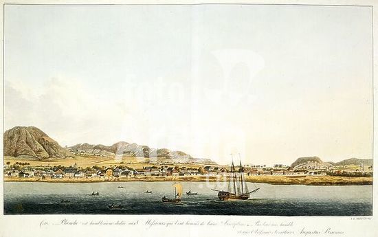 alb4070038 Right-hand side of a panoramic view of the coastline of St. Kitts from the sea, with boats and sailing ships in the foreground, logs on the beach beyond. Church and houses of Basseterre, British flag flying above fort, palm trees and mountains in the background. [View of Saint Christopher Island] : Cette Planche est humblement dediée aux Messieurs qui l'ont honorés de leurs Suscriptions. London : Published as the Act directs [publisher not identified], February 1 1788. Hand-coloured etching. Source: Maps K.Top.123.80.a. Language: French. Author: J. F Miller.