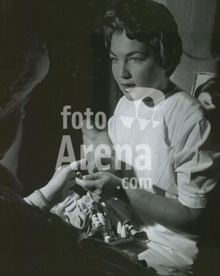 akg271942 Occupation / Beautician:. "Colette est manucure chez Carita, faubourg Saint-Honoré".- (Manicurist with a customer (Paris) ). Photo, 1957. From the series: La Femme en France. Copyright: Manipulation of image strictly forbidden. Full credit line mandatory © Daniel Frasnay / akg-images. For editorial use only.