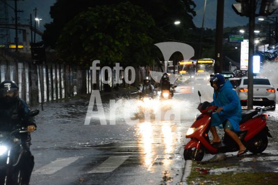 2917506 Um forte temporal alagou ruas e avenidas causando engarrafamentos e muito trânsito, motoristas e motociclistas se arriscaram a trafegar durante a chuva na tarde desta quinta feira (02) no Rio de Janeiro.