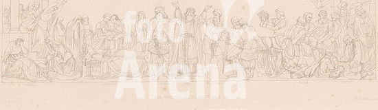 alb3902860 The Coronation of Charlemagne. Date/Period: 1840. Drawing. Brown ink over graphite. Height: 332 mm (13.07 in); Width: 599 mm (23.58 in). Author: Julius Schnorr von Carolsfeld.