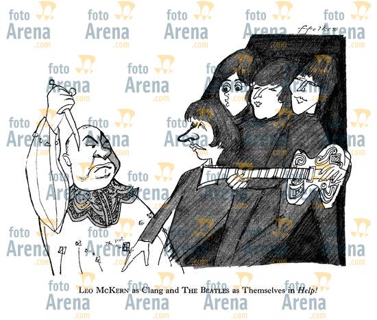 PCL103142 Leo McKern as Clang and The Beatles as Themselves in Help! *** Local Caption *** Punch cartoons by Michael ffolkes (Brian Davis)