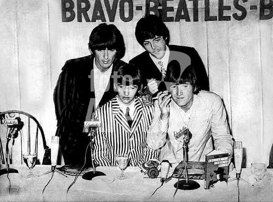00042273 "Beatles, 1960 - 1970, British rock band, Paul McCartney, John Lennon Ringo Starr and George Harrison, press conference, ""Bravo Blitz Tour"", Munich, 14.9.1966,"