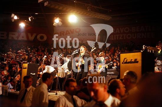 dpa8842399 View across the stage to the audience during a concert of the British group The Beatles on the 25th of June in 1966 in Essen.