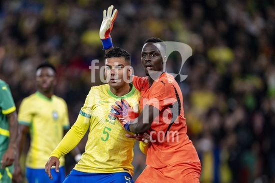 2843323 LONDRES, INGLATERRA - 15 DE NOVEMBRO: Casemiro, do Brasil (E), e Edouard Mendy, do Senegal (D), disputam posicao durante o amistoso internacional entre Brasil e Senegal no Emirates Stadium, em 15 de novembro de 2025, em Londres, Inglaterra. (Foto de Richard Callis/Fotoarena)