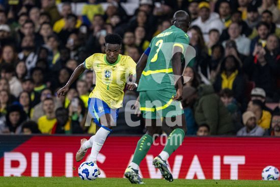 2843324 LONDRES, INGLATERRA - 15 DE NOVEMBRO: Vinicius Junior, do Brasil, corre com a bola durante o amistoso internacional entre Brasil e Senegal no Emirates Stadium, em 15 de novembro de 2025, em Londres, Inglaterra. (Foto de Richard Callis/Fotoarena)