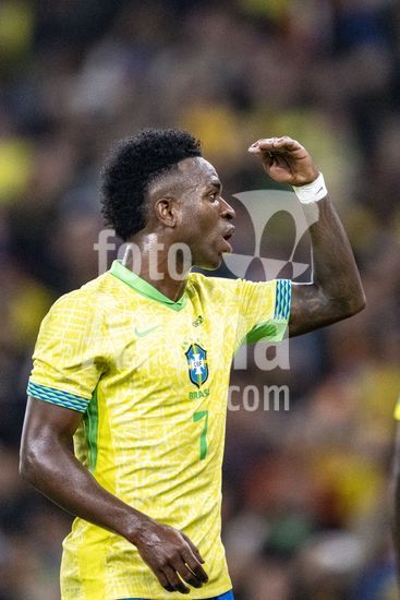 2843325 LONDRES, INGLATERRA - 15 DE NOVEMBRO: Vinicius Junior, do Brasil, gesticula durante o amistoso internacional entre Brasil e Senegal no Emirates Stadium, em 15 de novembro de 2025, em Londres, Inglaterra. (Foto de Richard Callis/Fotoarena)