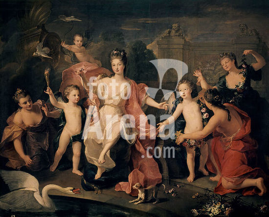 orz010885 The Duchess of Burgundy and her Children - 18th century - oil on canvas - 216 x 268 cm - French Rococo - NP 2274. Author: PIERRE GOBERT (1662-1744). Location: MUSEO DEL PRADO-PINTURA. MADRID. SPAIN. LEDA. MARIE ADELAIDE DE SAVOIE. BORGOÑA DUQUESA DE.