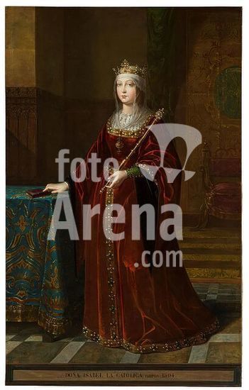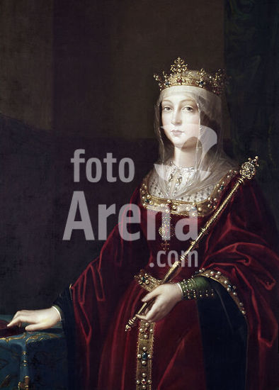 orz003907 Isabel the Catholic. Detail from the top part. Madrid, Cason del Buen Retiro. Author: LUIS DE MADRAZO Y KUNTZ (1825-1897). Location: CASON DEL BUEN RETIRO-PINTURA. MADRID. SPAIN. ISABEL LA CATOLICA (1451-1504) ISABEL I DE CASTILL.