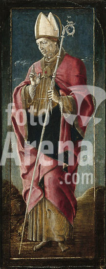 alb3731939 Saint Louis of Toulouse. Dated: c. 1470/1480. Dimensions: overall (middle right panel): 31 x 12.4 cm (12 3/16 x 4 7/8 in.) framed: 43.5 x 16.8 x 4.4 cm (17 1/8 x 6 5/8 x 1 3/4 in.). Medium: tempera and distemper on panel. Museum: National Gallery of Art, Washington DC. Author: Cosme Tura.
