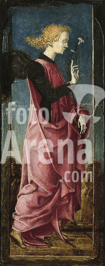 alb3736350 The Archangel Gabriel [middle left panel]. Dated: c. 1470/1480. Dimensions: overall (middle left panel): 31 x 12.4 cm (12 3/16 x 4 7/8 in.) framed: 43.5 x 16.8 x 4.4 cm (17 1/8 x 6 5/8 x 1 3/4 in.). Medium: tempera and distemper on panel. Museum: National Gallery of Art, Washington DC. Author: Cosme Tura.