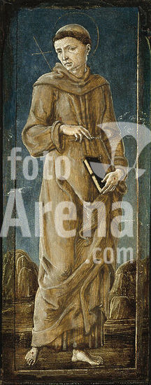 alb3736945 Saint Francis [far left panel]. Dated: c. 1470/1480. Dimensions: overall (far left panel): 31 x 12.4 cm (12 3/16 x 4 7/8 in.) framed: 43.5 x 16.8 x 4.4 cm (17 1/8 x 6 5/8 x 1 3/4 in.). Medium: tempera and distemper on panel. Museum: National Gallery of Art, Washington DC. Author: Cosme Tura.
