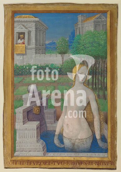 alb3901676 Bathsheba Bathing. Date/Period: 1498 - 1499. Detached leaf. Tempera and gold on parchment. Height: 243 mm (9.56 in); Width: 170 mm (6.69 in). Author: Jean Bourdichon.