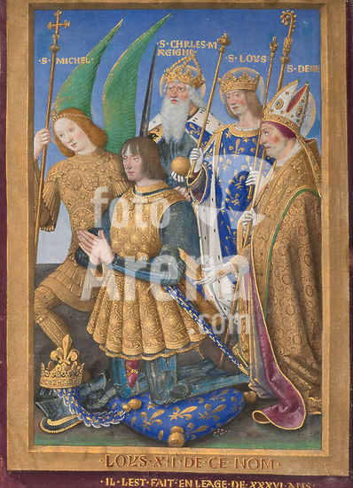 alb3901677 Louis XII of France Kneeling in Prayer. Date/Period: 1498 - 1499. Detached leaf. Tempera and gold on parchment. Height: 243 mm (9.56 in); Width: 157 mm (6.18 in). Author: Jean Bourdichon.