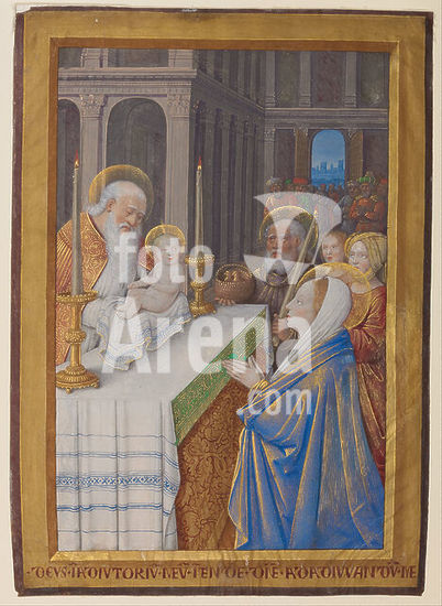 alb3901679 The Presentation in the Temple. Date/Period: 1498 - 1499. Detached leaf. Tempera and gold on parchment. Height: 240 mm (9.44 in); Width: 170 mm (6.69 in). Author: Jean Bourdichon.