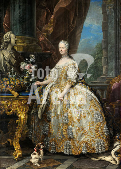alb3903497 Marie Leszczinska, reine de France (1703-1768) / Marie Leszczinska, Queen of France (1703-1768). Date/Period: 1747. Painting. Oil on canvas. Height: 274 cm (107.8 in); Width: 193 cm (75.9 in). Author: CHARLES-ANDRE VAN LOO.