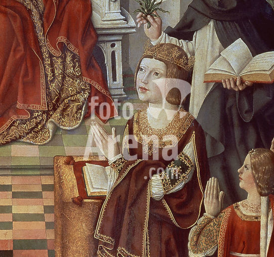 orz001340 'The Virgin of the Catholic Kings' (detail), 1491-1493, Panel, P01260. Author: MAESTRO DE LA VIRGEN DE LOS REYES CATOLICOS (S XV). Location: MUSEO DEL PRADO-PINTURA. MADRID. SPAIN. ISABEL PRINCESA HIJA DE LOS REYES CATOLICOS. ISABEL DE ARAGON Y CASTILLA. HIJOS DE LOS REYES CATOLICOS.