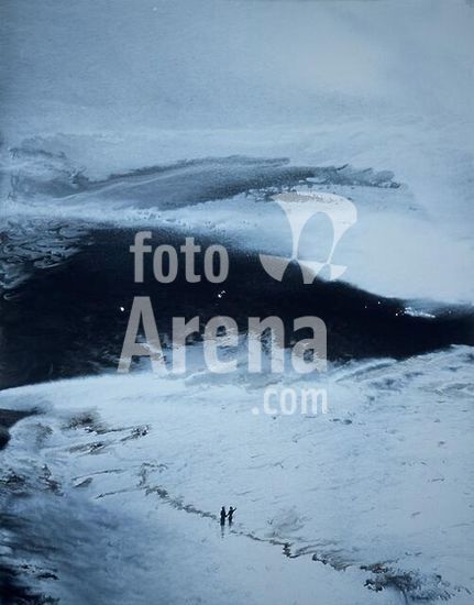 akg1724299 Malstrom / Moskenstraumen (Gezeitenstrom zwischen den Lofoteninseln Moskenesoy und Vaeroy in Norwegen). /-"Malstrom und Malstrombetrachter".-/ Gemälde. Landschaft 2007 von Susanne Knaack ( geb.1962), Figuren 2012 von Matthias Koeppel (geb.1937). Acryl und Öl auf Leinwand, 100 x 80 cm. Besitz der Künstlerin Susanne Knaack.