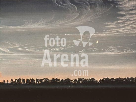 akg580517 Koeppel, Matthias. geb. 1937. "Mond über dunklem Acker (Nordheide) ", 1980. Öl auf Leinwand, 30 × 40 cm. Privatsammlung. Museum: PRIVATE COLLECTION. Copyright: © Matthias Koeppel. This artwork is not in the public domain. It is your responsibility to obtain all necessary third party permissions from the copyright handler in your country prior to publication.