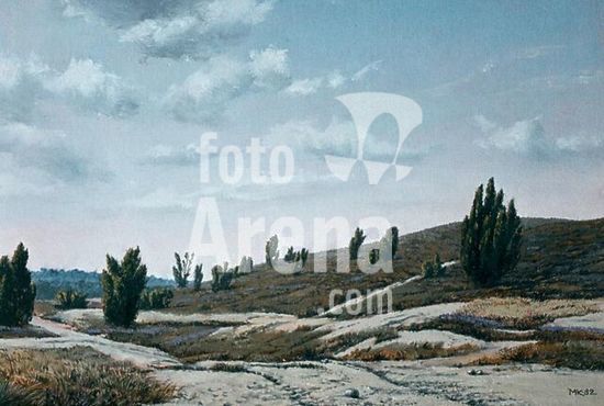 akg580825 Koeppel, Matthias. geb. 1937. "Panzerübungsgelände in der Heide", 1984. Aus dem Zyklus: Deutsche Landschaften. Öl auf Leinwand, 30 × 40 cm. Privatsammlung. Museum: PRIVATE COLLECTION. Copyright: © Matthias Koeppel. This artwork is not in the public domain. It is your responsibility to obtain all necessary third party permissions from the copyright handler in your country prior to publication.
